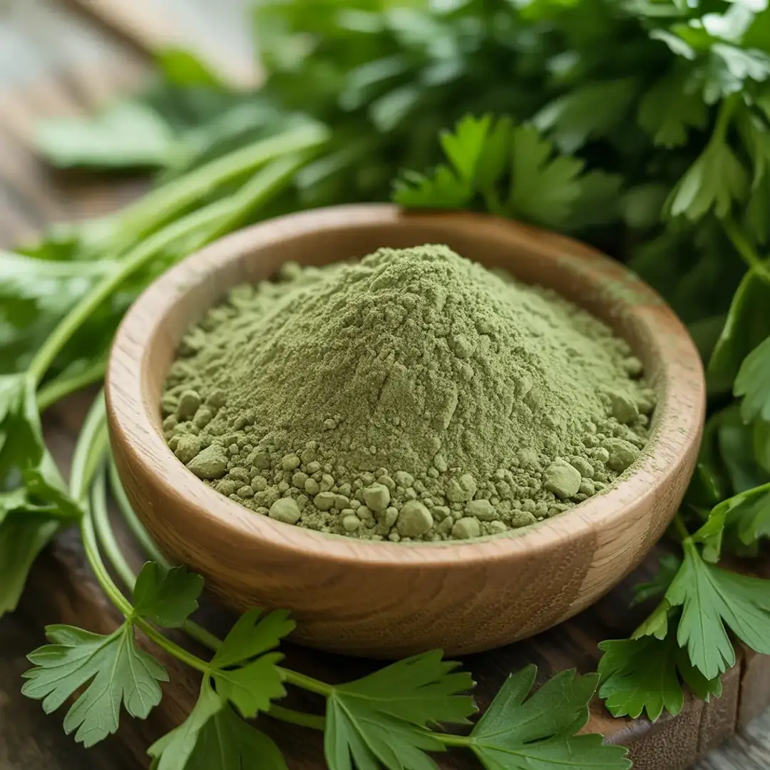 Belonging to the Apiaceae family, the popular spice parsley is a hardy biennial herb. Native to southern Europe and western Asia. furanocoumarins e.g., xanthoxin, trioxalen, and angelicin, quercetin, apiol, myristicin, apigenin, luteolin, and their glycosides are the major bioactive components found in these herb leaves. It is rich in minerals like iron, calcium, phosphorus, magnesium, sodium, potassium, iodine, manganese, sulfur, and vitamins like vitamin A, C, and K. It contains a diastase enzyme that helps break down starch into maltose. Intake of this herb is good for the heart, bone, and Eye health.